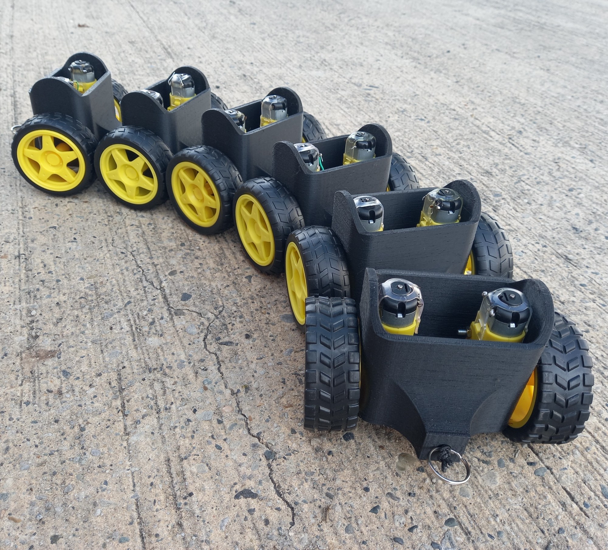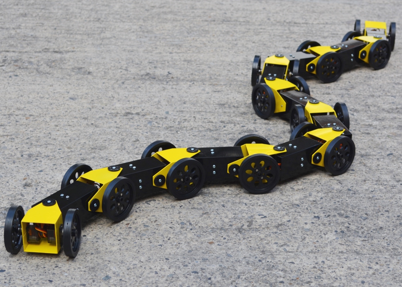 Assembly with 7 modules sections that move in a series of sinuous waves passing from head to tail.